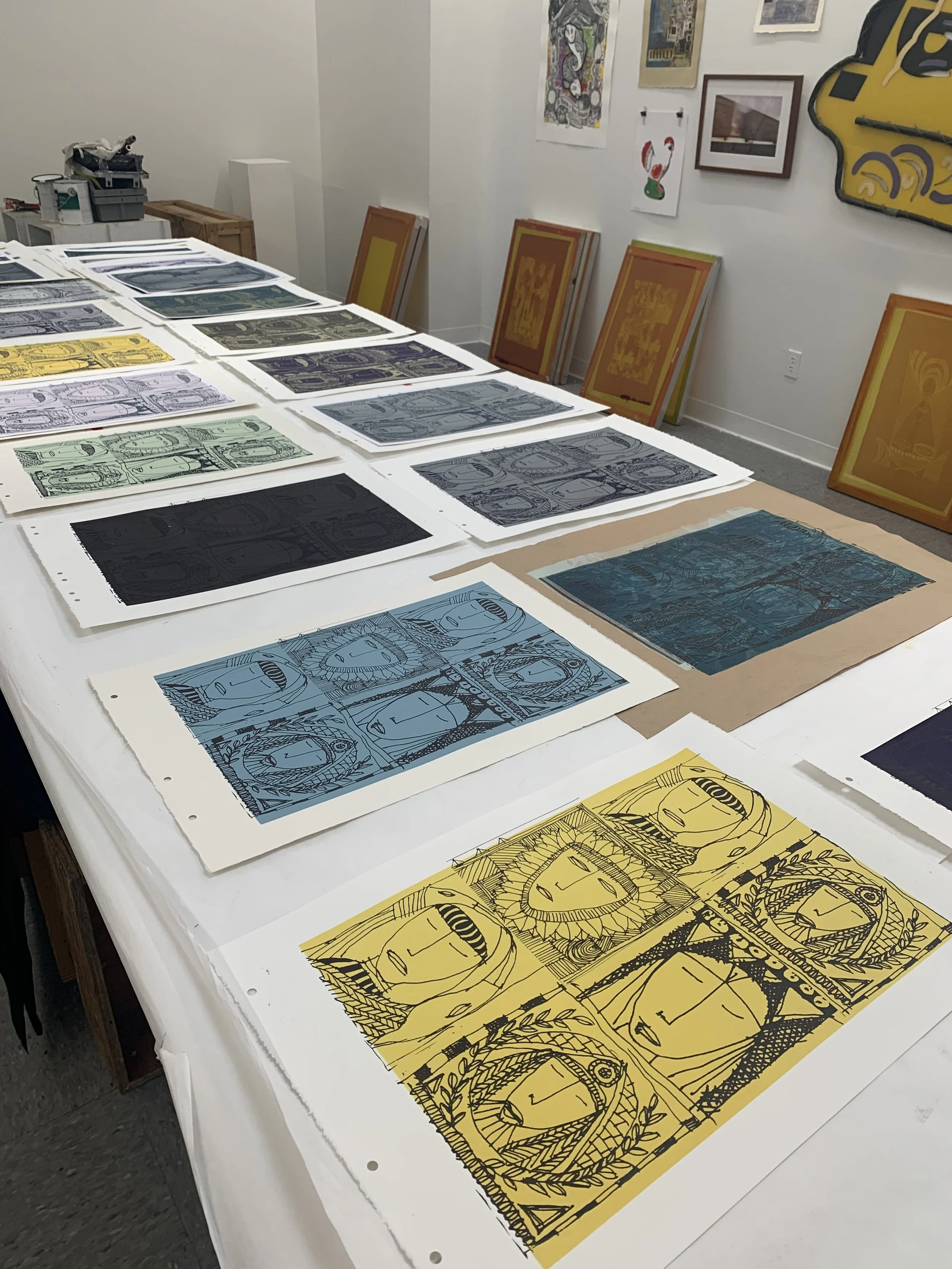 Numerous small editions of multi layered screenprints were created as part of the project and an exhibition was mounted in December of 2023.